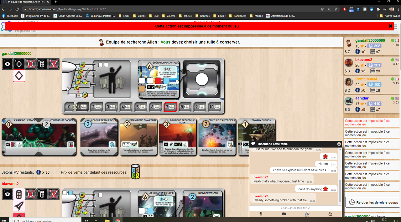 mais aucune possibilité de prendre une tuile ou même de passer....