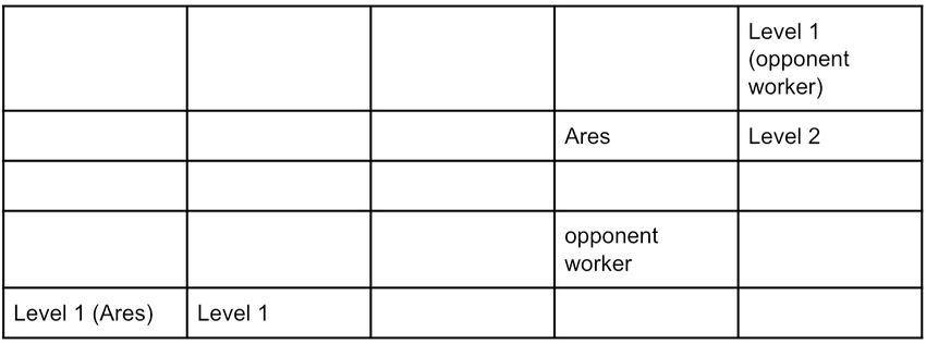 When you reach the position where there are a lot of level 2s, what you should try to do as Ares is to remove the ones next to the opponent, making it very difficult for the opponent to get a comfortable position. As as example,